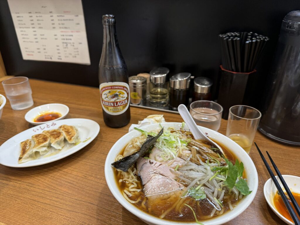 カウンターの棚の上にラーメンを置かれるスタイルなのだが、思ったよりもスープが