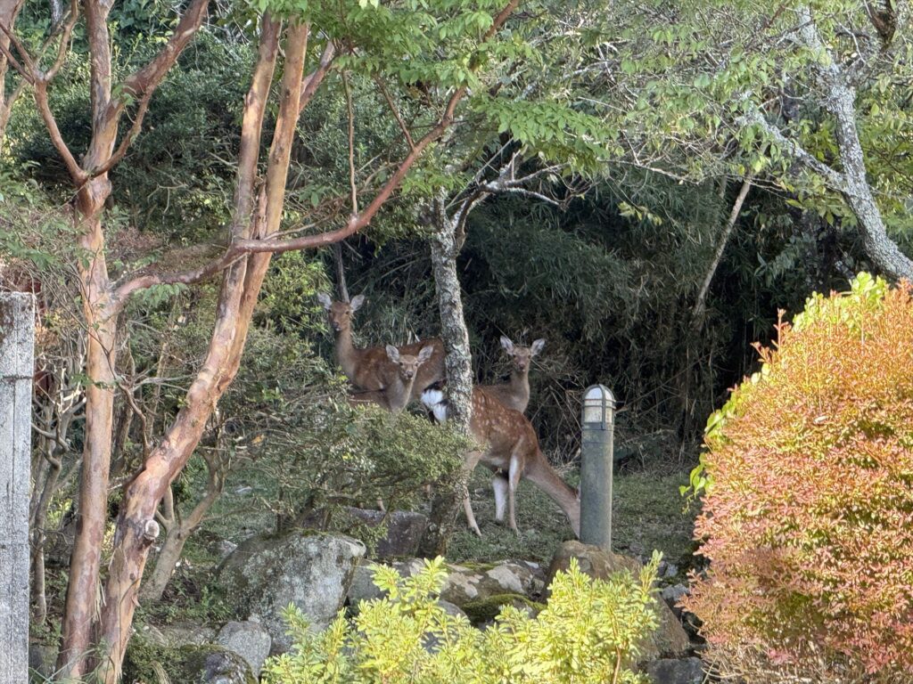 箱根の現場にて、鹿ファミリーに遭遇 大量にいすぎだろ・・・