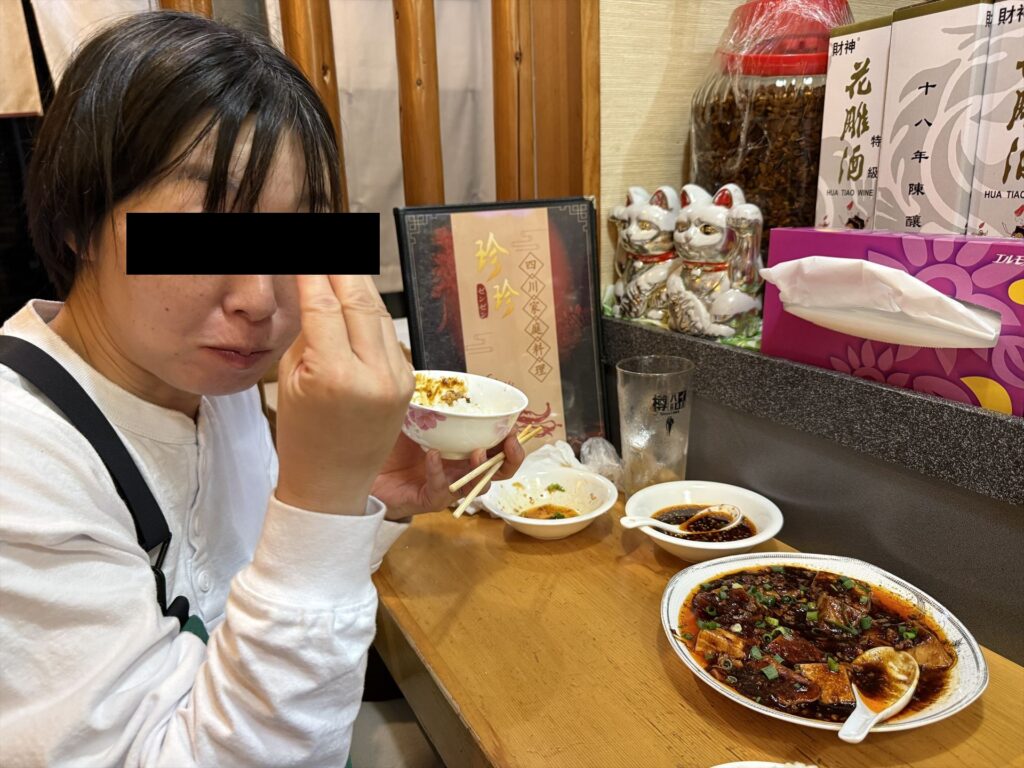 豚肉の辛いソースのやつ、タレがすごいおいしい ごはんにかけて食う(写真は麻婆豆腐)