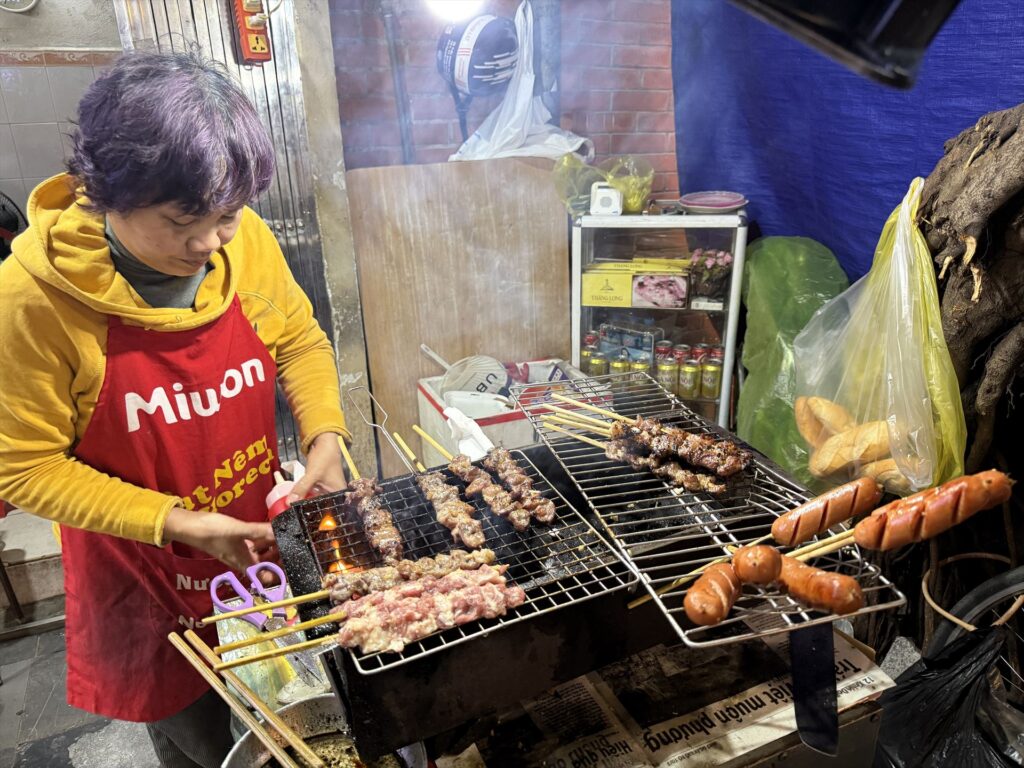 露天のソーセージとサテ(焼き鳥)うまかったですね!火力がつよい店が人気ありますね いたるところで商売してます