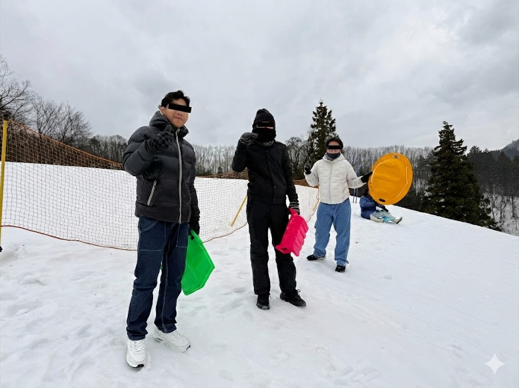 が、市内には雪が無かったのでレンタカー借りて山間部のスキー場でソリやってきました!