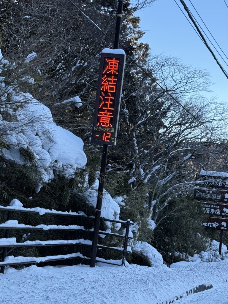そして、国道1号線 最高地点付近(芦ノ湯)ではなんとー12度を記録!まじかよおおお!