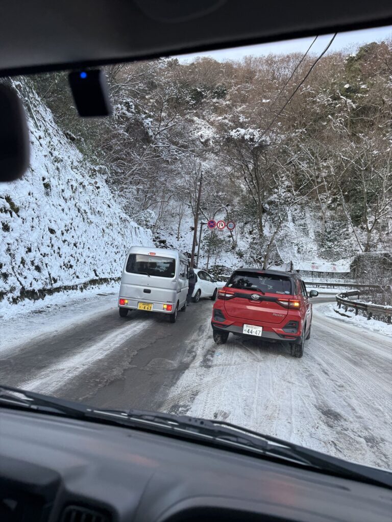 家をでてすぐ、渋滞発生!しっかり凍ってしまいテカテカです”!箱根にあがっていくと、箱根湯本の手前から渋滞が進まなくなりました!ちょっとずつ、すすんでいるやん!と思ったが、Uターンして脱落していっただけですね